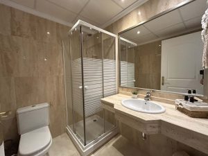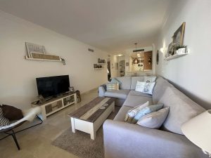 Elegant and bright west facing apartment situated in a gated 24hour security community only minutes away from some of Marbella's nicest sandy beaches. This immaculate apartment located in Elviria, combines comfort, style and convenience and features an ample open plan living & dining room with a modern fully fitted kitchen. From the living room you exit out onto the large covered terrace with views to the pool, communal gardens and surroundings. Santa Maria Village is a quiet and well kept community with landscaped gardens, 4 large swimming pools, children's pools and is just a 5 minute drive from 2 commercial centers with shops, supermarkets, bars & restaurants. The property also features A/C hot & cold, laundry room, private parking space & storage room. A perfect place to call home.