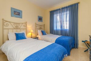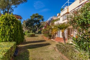 Bright and sunny ground floor apartment in the sought after community of Los Jardines, just around the corner of the 18-hole Santa Maria Golf Course. The community is fully gated and offers 4 outdoor swimming pools surrounded by landscaped gardens, 24-hour security and underground (private) parking spaces and storage rooms. The apartment is south facing and consists of two bedrooms with two bathrooms, a fully fitted kitchen with all appliances and a utility room, an ample lounge/dining area and a sunny terrace with direct garden access. Walking distance to local shops, restaurants, supermarkets and the beach!