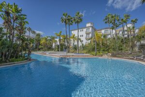It is situated within a spectacular Mediterranean-style urbanization with security, several swimming pools, extensive gardens with waterfalls, and a restaurant/bar open during the summer.