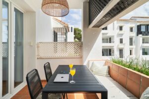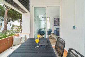Spanning beautifully maintained subtropical gardens and pinewoods, the residence enjoys a peaceful ambiance and the convenience of being within walking distance to high-end beach clubs, restaurants, supermarkets, and year-round leisure amenities. Designed for relaxed coastal living, the apartment features bright, open-plan interiors that flow onto a private terrace—ideal for enjoying warm evenings or morning sun.