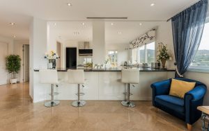 The property boasts a south-facing orientation, ensuring abundant natural light throughout the day. Marble floors and a modern layout complete an elegant and welcoming atmosphere. The kitchen, completely renovated 5 years ago, has been opened up to the living room, creating a more spacious, modern area connected to the outdoors.