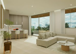 Vivienda 12 offers a bright open-plan layout, a fully fitted kitchen and bathrooms, and a spacious 44 m² terrace, with seaview, ideal for relaxing, entertaining, or soaking up the sun all year round.
