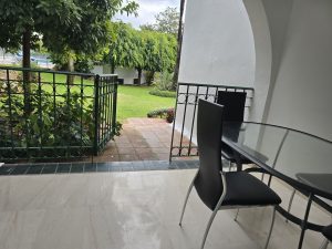 Beautiful tropical garden with pool, children pool, changing room, WC and restaurant,
