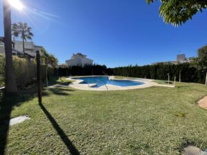 The main room connects to a large private terrace, ideal for social gatherings or enjoying the barbecue area. The residential complex offers communal areas such as a swimming pool and garden, allowing you to enjoy leisure time without leaving the premises. In addition, the property is located in a gated community with surveillance cameras, which increases security.