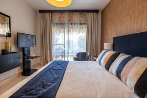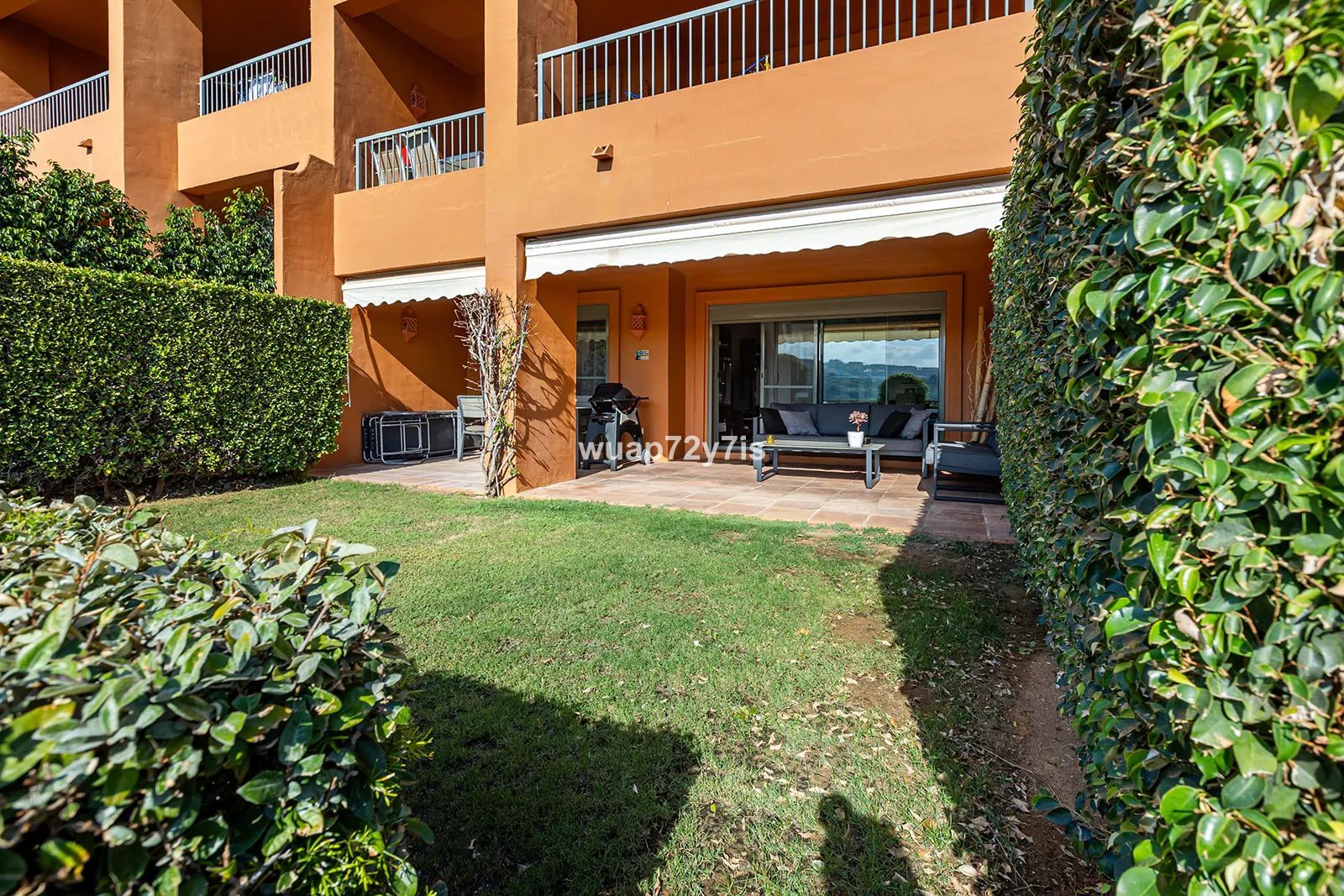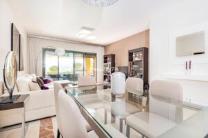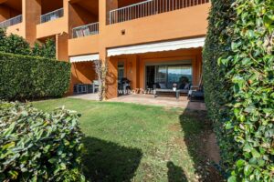 Located in the renowned Benatalaya urbanization—one of Estepona’s most private and secure gated communities—this elegant ground-floor residence offers exceptional tranquility. Its corner position and secluded private garden create a peaceful haven surrounded by beautifully landscaped Mediterranean greenery.