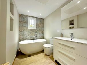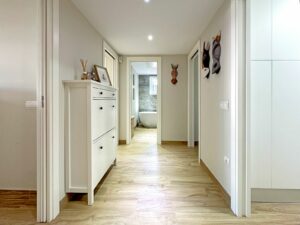 The apartment has a constructed area of ​​106.9 m² and an interior area of ​​89 m², distributed into two spacious bedrooms and two modern bathrooms, one of which is en suite. The bright and inviting living room opens onto an impressive 120 m² private terrace, perfect for enjoying outdoor gatherings, thanks to its barbecue area and panoramic views of the countryside, mountains, and communal gardens. The fully equipped and renovated kitchen is complemented by a practical utility room, while the porcelain floors, high-quality interior and exterior woodwork, and updated bathrooms reinforce the modern feel. The property, in excellent condition and adapted for people with reduced mobility, also features air conditioning, a fireplace, built-in wardrobes, and a guest toilet.