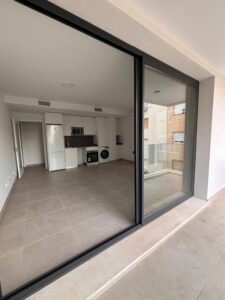 The apartment is ideal for immediate occupation. The living room is designed for comfort, complemented by fitted wardrobes that maximise storage space. Air conditioning ensures a pleasant environment throughout the year, while the inclusion of a lift adds to the ease of access within the building.