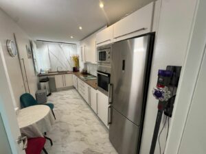 This beautiful ground floor is located in a beautiful urbanization with beautifully maintained gardens, a large swimming pool and a children's pool. The flat is located on the first floor and has a spacious living room with a partially open kitchen. There are two spacious bedrooms and two modern bathrooms.