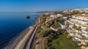 MAGNIFICENT BEACHFRONT APARTMENT WITH STUNNING VIEWS OF THE SEA, BEACH, MOUNTAINS AND THE AFRICAN COAST, FEATURING A SPACIOUS 77m² TERRACE. This property is located in the Estepona area, between Estepona town and the charming Puerto de la Duquesa — just a 5-minute drive from all kinds of amenities and several golf courses of varying levels, including the award-winning Finca Cortesín, consistently recognized as Spain’s best golf resort and host of prestigious tournaments such as the 2023 Solheim Cup and the Volvo Masters. Conveniently situated on the same level as the parking area, with direct access to the residence, the apartment also enjoys an elevated position (4th floor) above sea level from the terrace. Facing southeast, it offers panoramic sea views over beautifully landscaped gardens stretching all the way to Africa — the perfect setting to enjoy spectacular sunrises. The development is very well maintained, with spacious green areas and a large swimming pool. A garage parking space and storage room are included. We highly recommend a viewing — JUST LISTED!