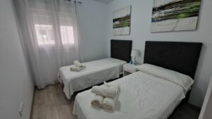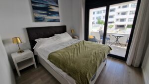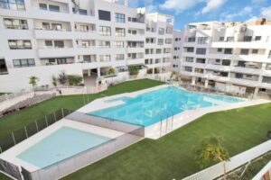 Beautiful bright new 2 bedroom, 2 bathroom apartment in Estepona Gardens, which is a development located in the centre of Estepona town. This latest phase was built only 2 years ago in 2023. It is only 5 minutes walk from the historical Old Town and 10 minutes to the beach. Local amenities such as health centres, schools, parks, restaurants, shops and supermarkets are all within a short walk. This modern apartment has an entrance hall, 2 bedrooms, 2 bathrooms, (1 family bathroom with bath & shower, 1 ensuite with shower), separated by a small hall and door, leading to a large bright sitting-room, kitchen, utility room and terrace. It includes a garage space and a storage room. It is south west facing, located inside the complex, on the first floor overlooking the pool and children’s play area.