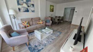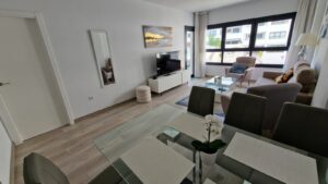 Some of the features include the fitted kitchen and utility room, with all the appliances, air-conditioning hot/cold, solar panels on the roof for hot wáter and full WiFi coverage, amongst others. This first floor apartment is accessible with own key access through secure gates with internal intercom, via lift and stairs. The complex has extensive communal areas and gardens, including a large swimming pool, playground for children, and an outdoor gym.