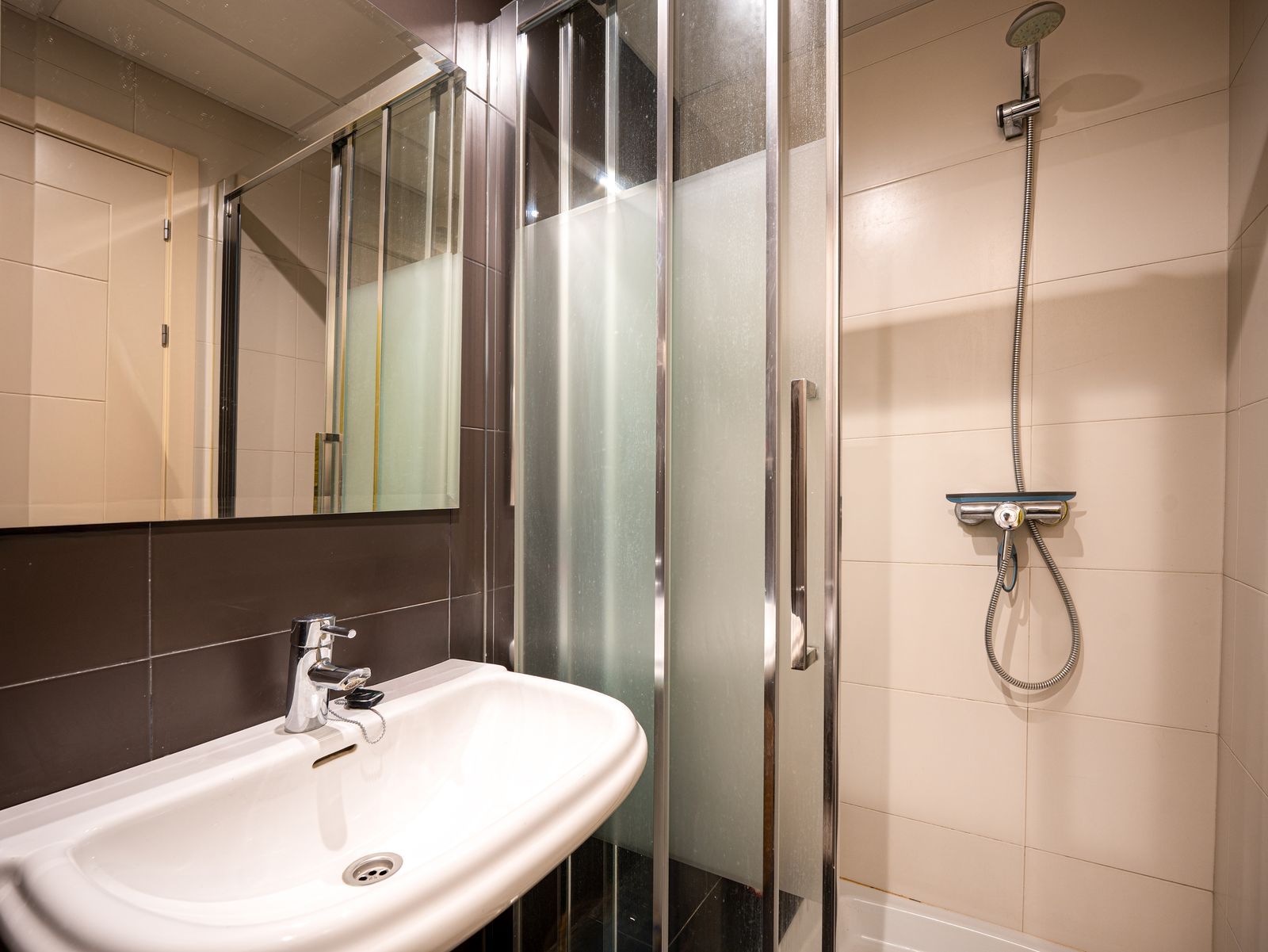 The apartment, located on a first floor with elevator, has a constructed area of 90 m², distributed in a functional and bright way. It consists of 2 spacious bedrooms with built-in wardrobes and 2 complete bathrooms, which guarantees comfort for couples, small families, or professionals who wish to telework from a privileged environment.