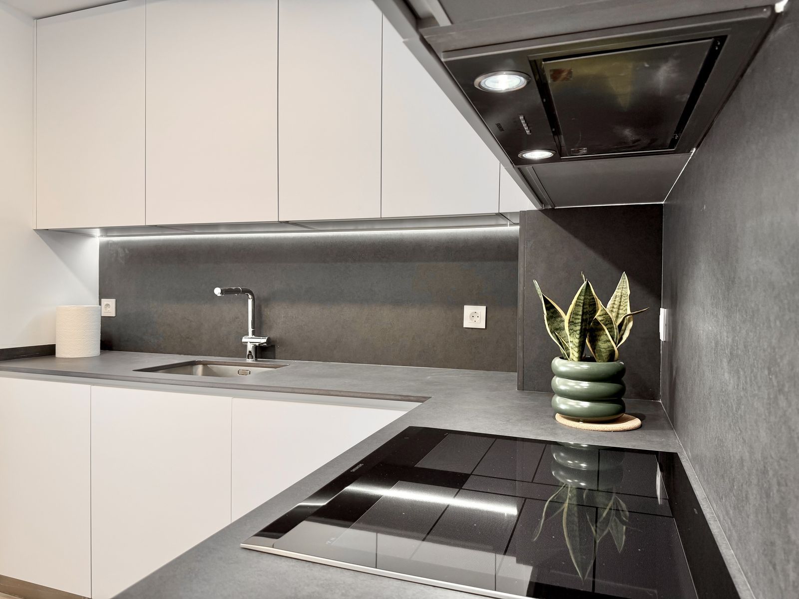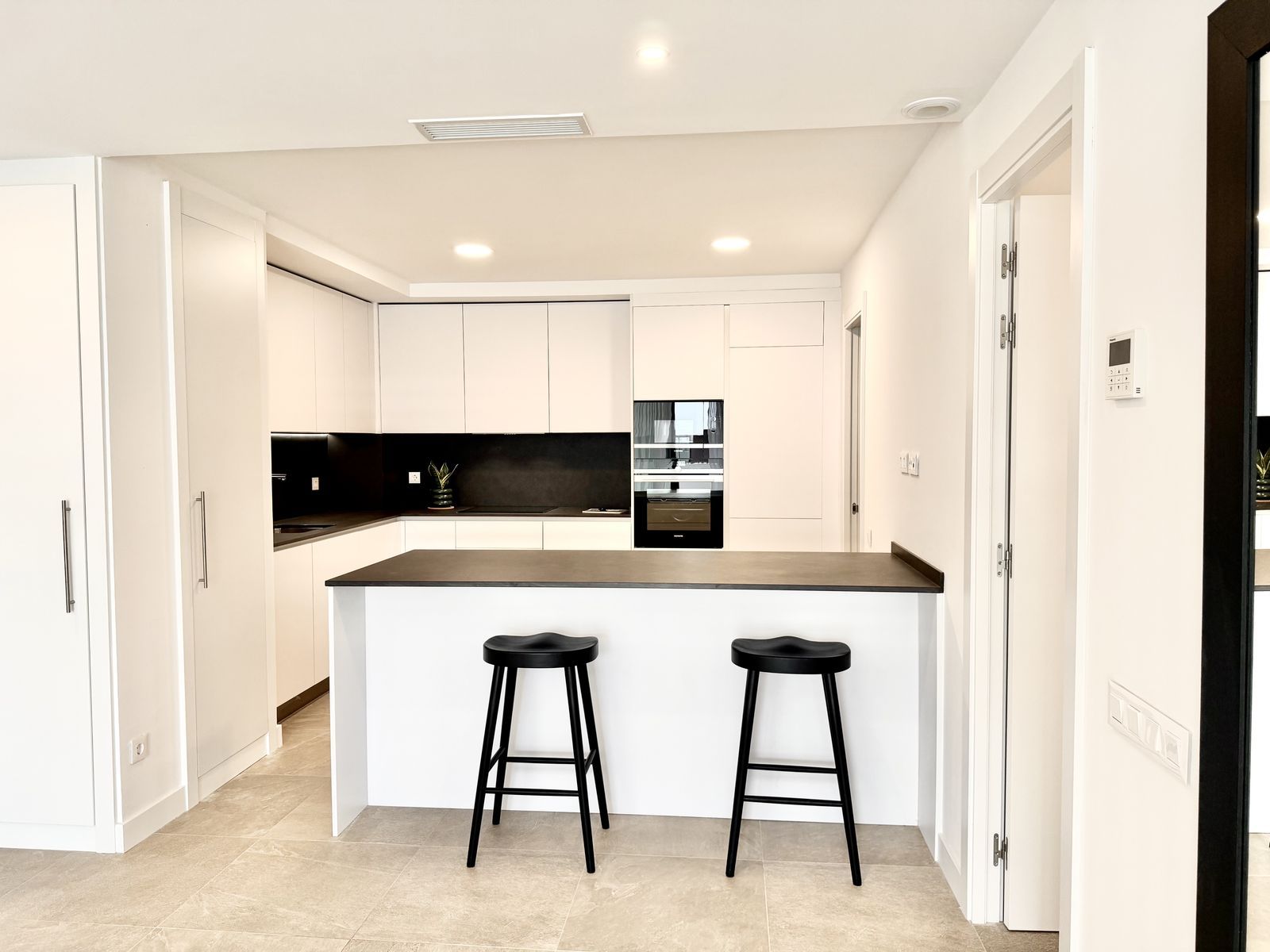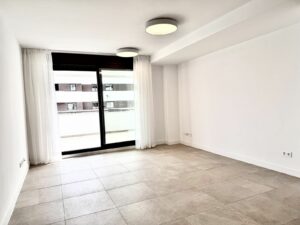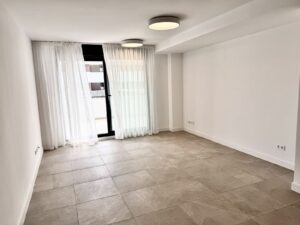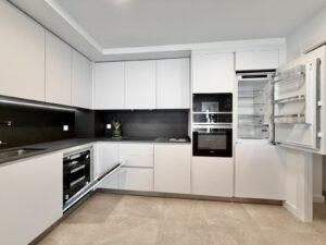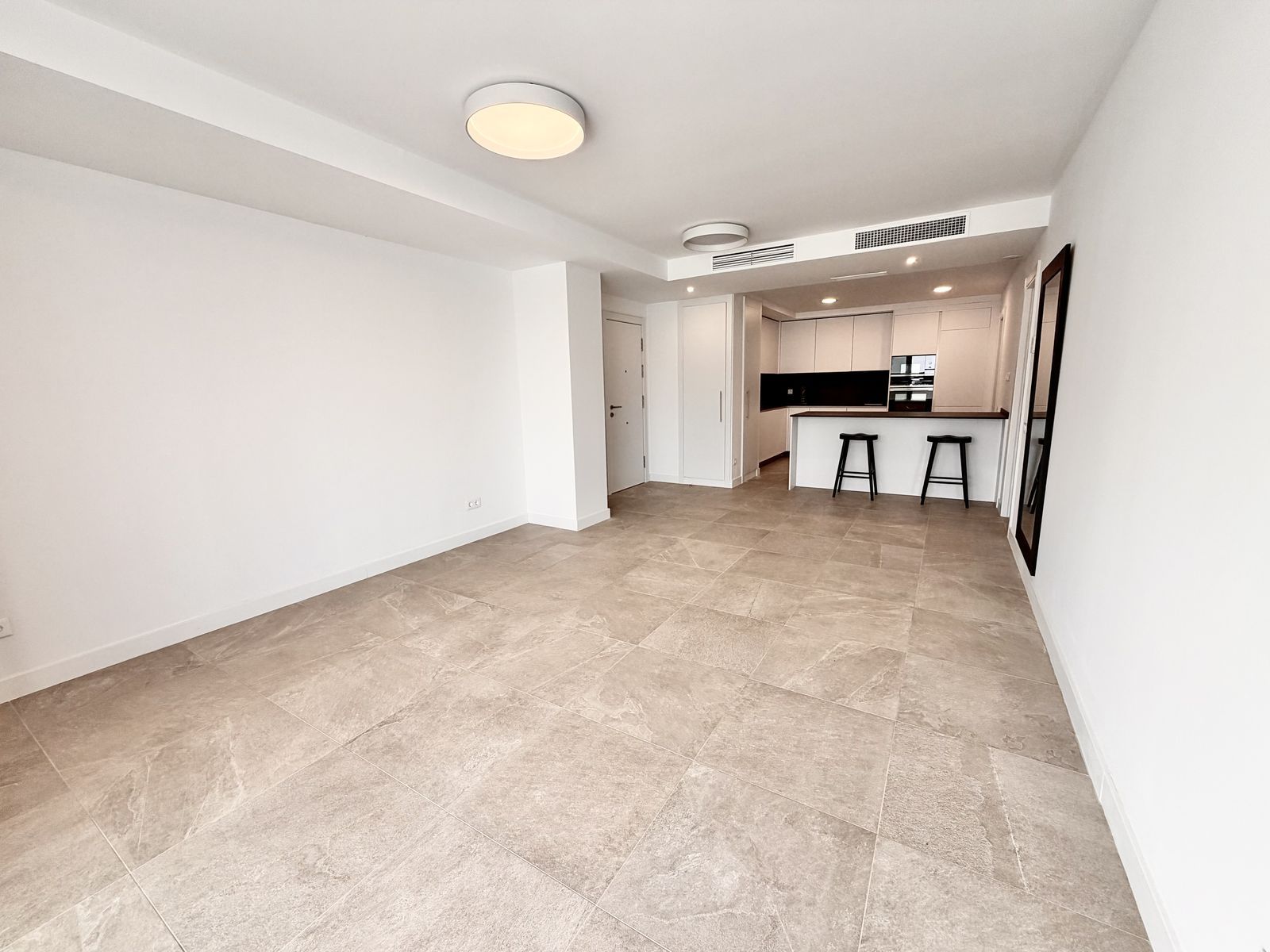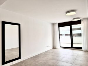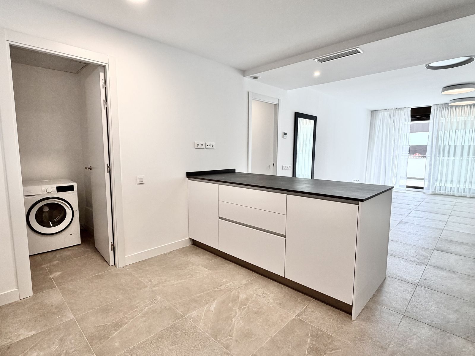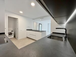 The open-plan living area with a modern kitchen opens onto a spacious private terrace — perfect for enjoying the Mediterranean lifestyle.
