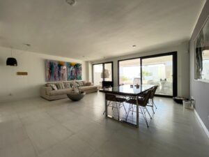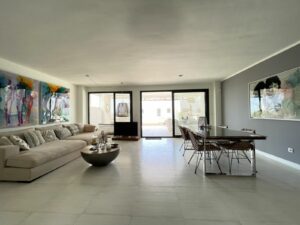 We present this exceptional ground floor apartment located in the sought-after area of Las Olas, in West Estepona. The property, with a built area of 182m² and 90m² of interior space, stands out for its transformation from the original three bedrooms to a modern two-bedroom design, allowing you to enjoy a 30m² living room, providing greater space and comfort to the living area.