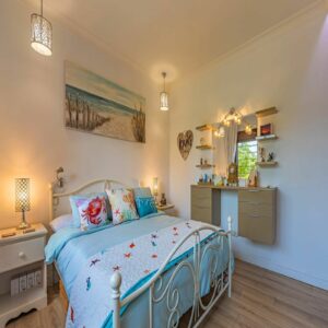 The property, built with high-quality materials, offers two spacious bedrooms, carefully redesigned lighting that enhances every corner, and a practical anti-limescale system for greater comfort. From the terrace, you can enjoy pleasant views of the lush gardens, the communal pool, and a partial sea view.
