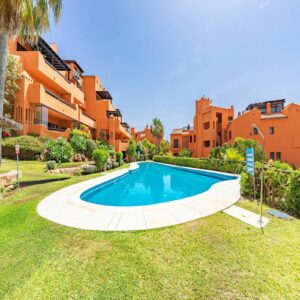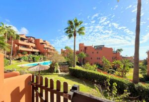 GROUND-FLOOR APARTMENT WITH LARGE TERRACE AND TOURIST LICENSE NEAR THE SEA. Privileged location in a charming Mediterranean-style complex, just 200 m from the beach and only a 5-minute drive from Estepona and the vibrant Duquesa Marina, where you’ll find all kinds of services, restaurants, and leisure options. This beautiful ground-floor apartment stands out for its brightness, thanks to its southeast orientation, and for its magnificent newly renovated terrace, featuring glass curtains, an outdoor kitchen area, and elegant parquet flooring that adds warmth and style.