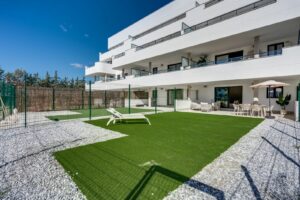Experience perfect modern Mediterranean living in this immaculate, brand-new 2-bedroom, 2-bathroom ground-floor apartment in the prestigious Aranya development in Estepona, ideally positioned between Marbella and Estepona.