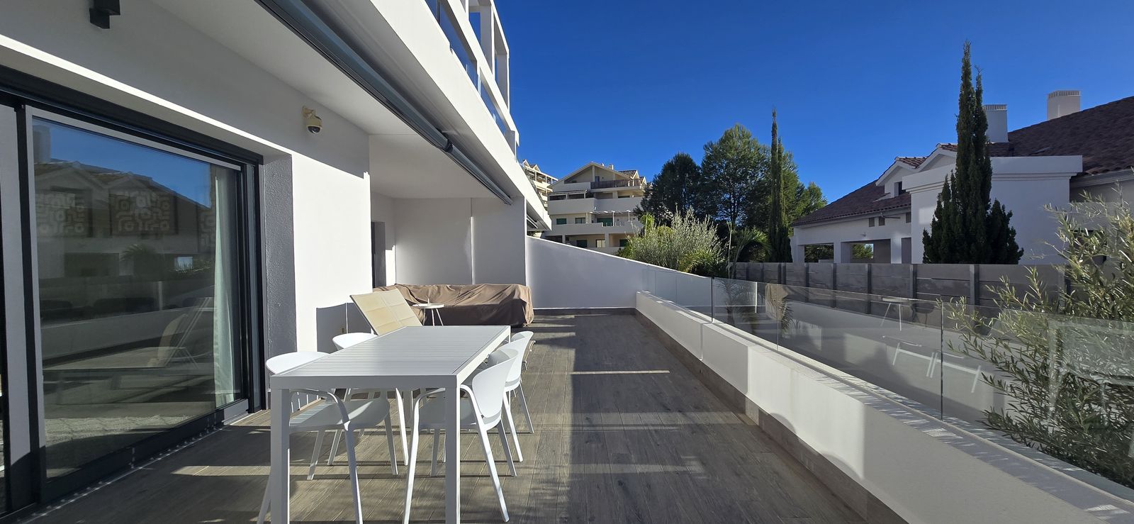 Built in 2016, Ocean Hills offers excellent communal facilities, including two swimming pools (one for children), a gym, and underground parking. The location is ideal — just 5 minutes from Atlas International School, 3 minutes from La Resina Golf Course, and less than 10 minutes from the beach and local supermarkets. Estepona town centre and Puerto Banús are only a 12–15 minute drive away.