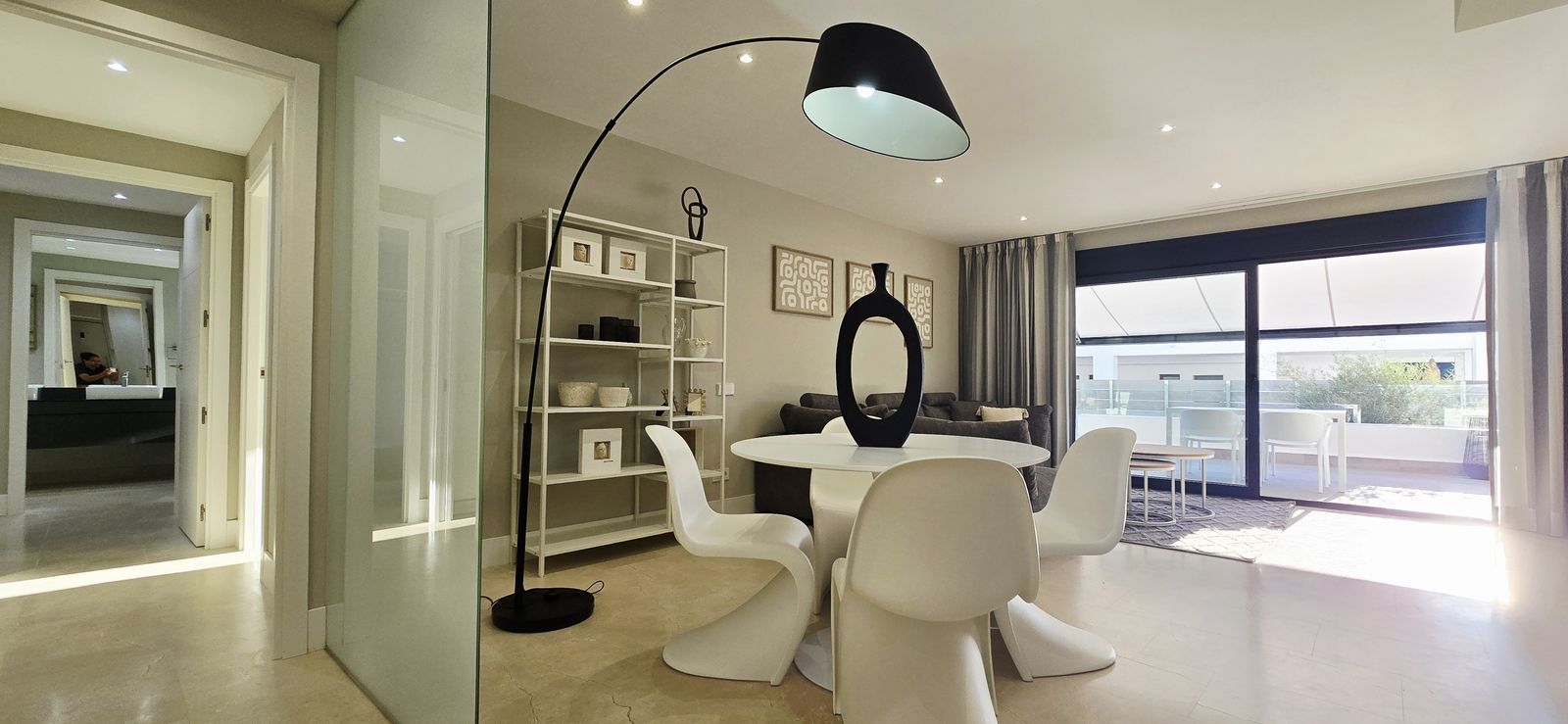 This stylish property is in excellent condition. Upon entering, you’ll immediately appreciate the sense of space created by the open-plan layout, featuring a contemporary American-style kitchen and a generous living area that seamlessly connects to the expansive terrace — the perfect place to enjoy the Costa del Sol’s wonderful climate.