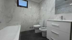 Both bedrooms are spacious and functional, while the bathrooms feature high-quality finishes and a sleek, modern style.