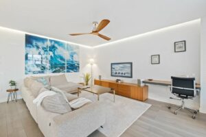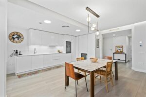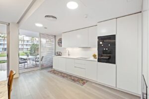 This bright and spacious property offers an elegant layout designed for comfort and outdoor living. The large living and dining area opens directly onto a beautiful 35 m² terrace with sea views and an expansive garden, creating a seamless connection between the interior and exterior spaces. The kitchen is fully equipped with high-end Gaggenau appliances, combining style and functionality.