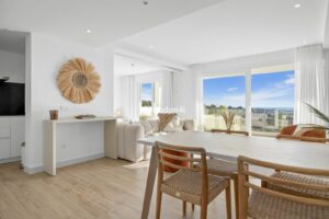 The living area opens seamlessly onto a generous 25 m² terrace, creating a perfect balance between indoor and outdoor living. An inviting space to relax, dine or simply enjoy the Mediterranean climate all year round.
