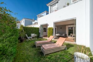 The property features a private garden and a covered terrace, ideal for outdoor dining and year-round enjoyment. The interior benefits from abundant natural light and has been exceptionally well maintained, making it move-in ready.