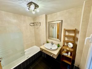 Inside, the apartment offers a comfortable and well-designed layout. It features two bedrooms, including an elegant principal bedroom with an en-suite bathroom and private balcony, an intimate space ideal for starting the day with natural light. The second bedroom is served by a modern and practical fully fitted bathroom with a shower.