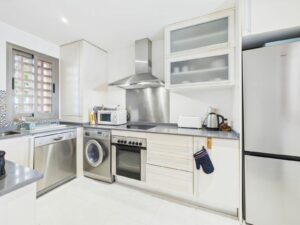 The property includes an underground parking space with a large private storage unit, as well as ample guest parking. A bus stop at the end of the road provides convenient connections to Estepona and Puerto Banús.