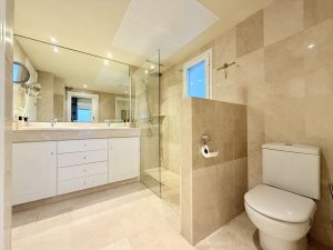 Set within the community, residents enjoy a tropical garden and swimming pool, while the apartment also benefits from a private staircase to the beach.