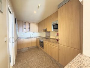 The property features a bright living-dining area opening onto an exceptional 100 m² private terrace, perfect for outdoor living by the sea. It offers two bedrooms and two bathrooms, presented in good condition with a comfortable and practical layout.