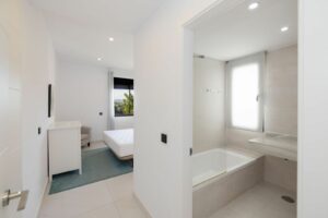 The finishes stand out for their quality and elegance: large-format porcelain floors, a fully equipped kitchen with high-end appliances and Solid Surface countertops, and designer bathrooms with walk-in showers, integrated washbasins and backlit mirrors.