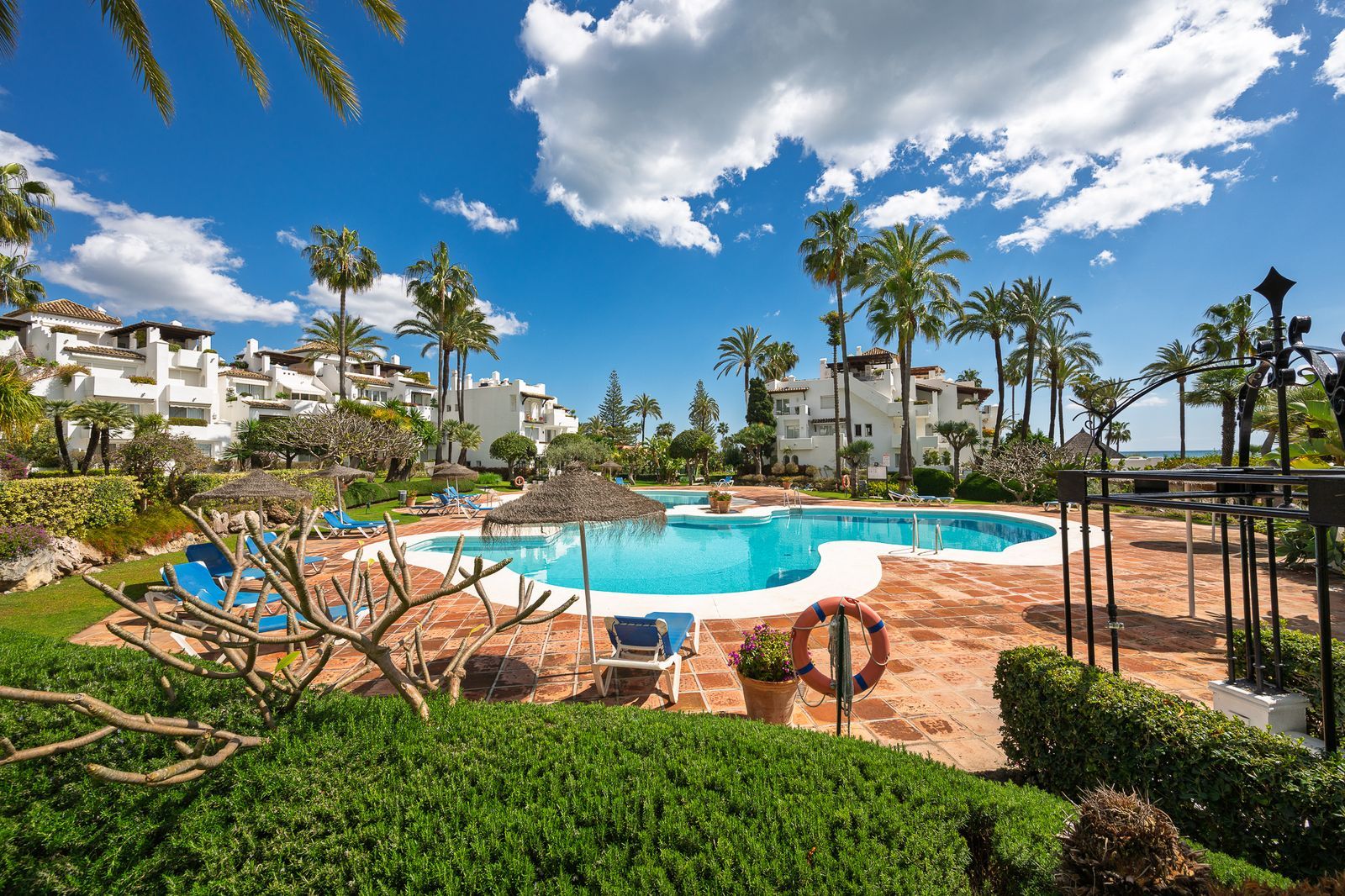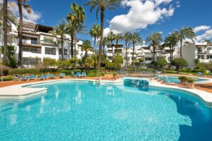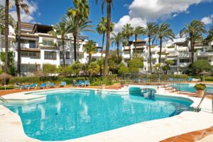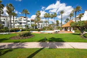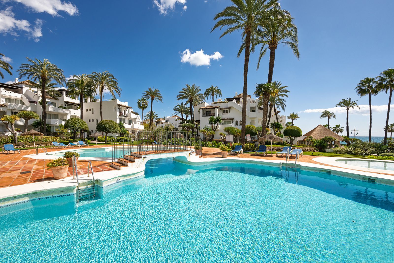 OPPORTUNITY, Discover paradise on the Costa del Sol! This spectacular ground floor apartment offers you everything you have always dreamed of with its partial sea views step away from one of the best Sandy beaches in Costa del Sol. This Home is Located in one of the quietest and most beautiful beachfront Gates developments, just a step away from the charming center of Estepona, with its old town full of life, flowers and delicious gastronomy. With 140 m² built and 119 m² usable, this apartment has 2 large bedrooms with fitted wardrobes and 2 bathrooms, one of them en suite with a possibility of converting it to a 3 bedrooms as many other apartments are reform in the same Urbanization.