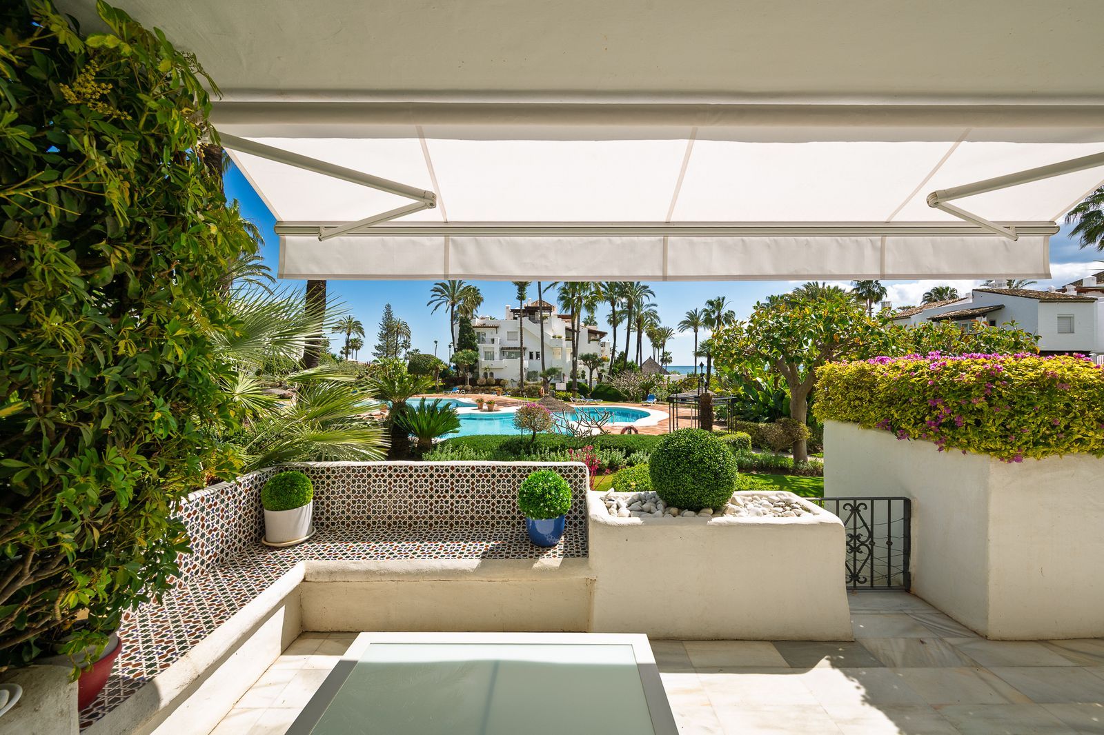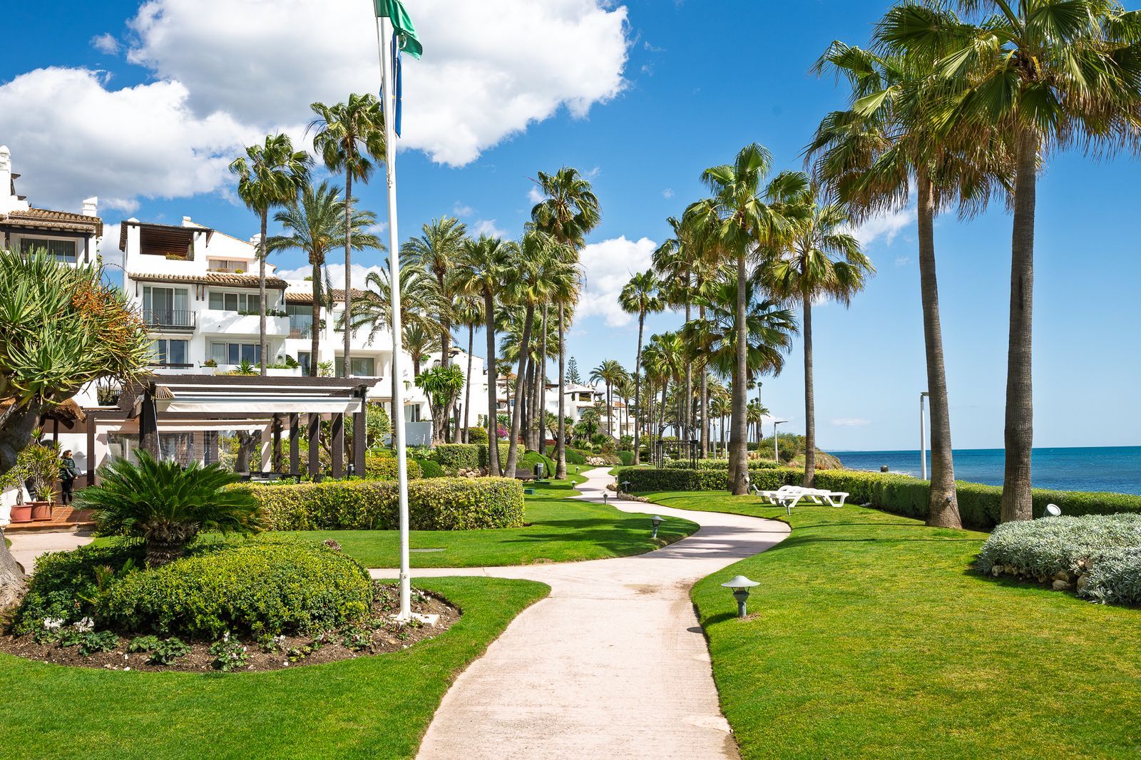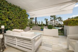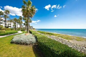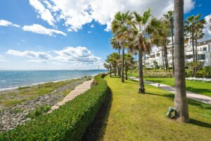 Spectacular Spacious ground floor apartment in BEACHFRONT Urbanization in Estepona.