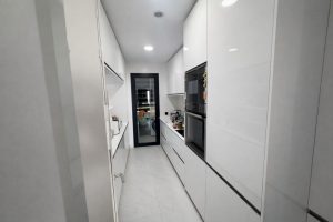 It features a large living room with direct access to a generous covered terrace, from which you can enjoy panoramic views of the sea and the town of Estepona. The southwest orientation ensures sunlight for most of the day and spectacular sunsets.