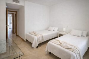 The apartment comprises two well-proportioned bedrooms, both with built-in wardrobes. The master bedroom stands out for its natural light and direct access to the terrace, providing added comfort and privacy. The property also offers two fully fitted bathrooms with a modern and functional design.