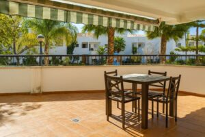 Two-bedroom flat located in the attractive Guadalmina Baja complex. Situated in a secure gated community, this flat also enjoys communal tropical gardens, a swimming pool and the convenience of being within walking distance of the beach, shops, restaurants and other local amenities.