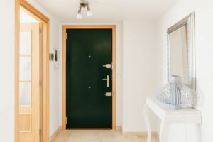 The flat has a practical layout: the kitchen is on the left, fully equipped with good quality appliances, ideal for everyday use.