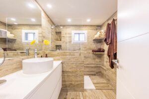 Comfortable interior layout featuring two spacious bedrooms, two modern bathrooms, and an open-plan living area with integrated kitchen.