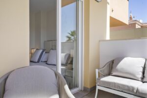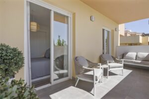 The family bathroom is fully reformed in a modern style with walk in shower, handy sensor lighting and LED mirror with bluetooth and speaker. The master bedroom has a spacious ensuite bathroom, modern and fully reformed with large walk in shower and sensor lighting. The master bedroom suite is a relaxing haven with a luxury feel, bright and airy with built in double wardrobes and patio doors to the outside terrace and a seperate seating area. The second bedroom is bright, charming and a lovely space. Also with built in double wardrobes and patio doors to access to the terrace. The terrace area has been refurbished in a modern style with different areas to rest and relax and designer outdoor furniture included.