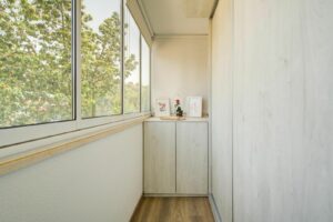 The property is distributed on one floor and has an excellent south-east orientation. Upon entering, we access a hall that leads to the separate kitchen, bright and functional, with an adjoining laundry room. Next, we find the master suite, equipped with built-in wardrobe, en-suite bathroom with bathtub and a cosy enclosed terrace with airtight double-glazed windows, currently converted into a spacious and elegant dressing room.