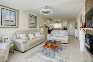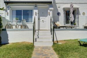 Apartment for sale in the Las Adelfas residential area in La Cala de Mijas, close to all kinds of shops, the sea and the A7 motorway, but in a very quiet residential area. This is a renovated ground floor flat, ready to move into, with a magnificent front terrace overlooking the sea, a private garden and a large back patio of around 20 m², perfect for barbecues, family gatherings and relaxing outdoors.
