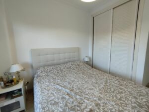 The property has two bedrooms with built-in wardrobes, two full bathrooms (one en suite), a spacious living room with access to a terrace, and a fully equipped separate kitchen. Air conditioning (hot/cold), an elevator, 24-hour security, paddle tennis courts, two swimming pools (one open year-round), a children's area, and large green areas for walking.