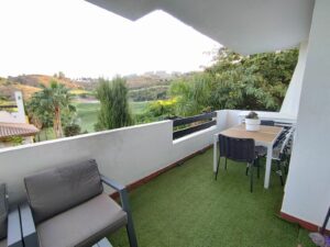 Corner apartment for sale, WITH A VALID VACATION LICENSE, in the Cala de Mijas area, Urb Calanova Grand Golf, next to the Calanova golf course. The apartment is ready to move into. It has a surface area of 80 m2, including a 10 m2 terrace facing southwest and overlooking the golf course.