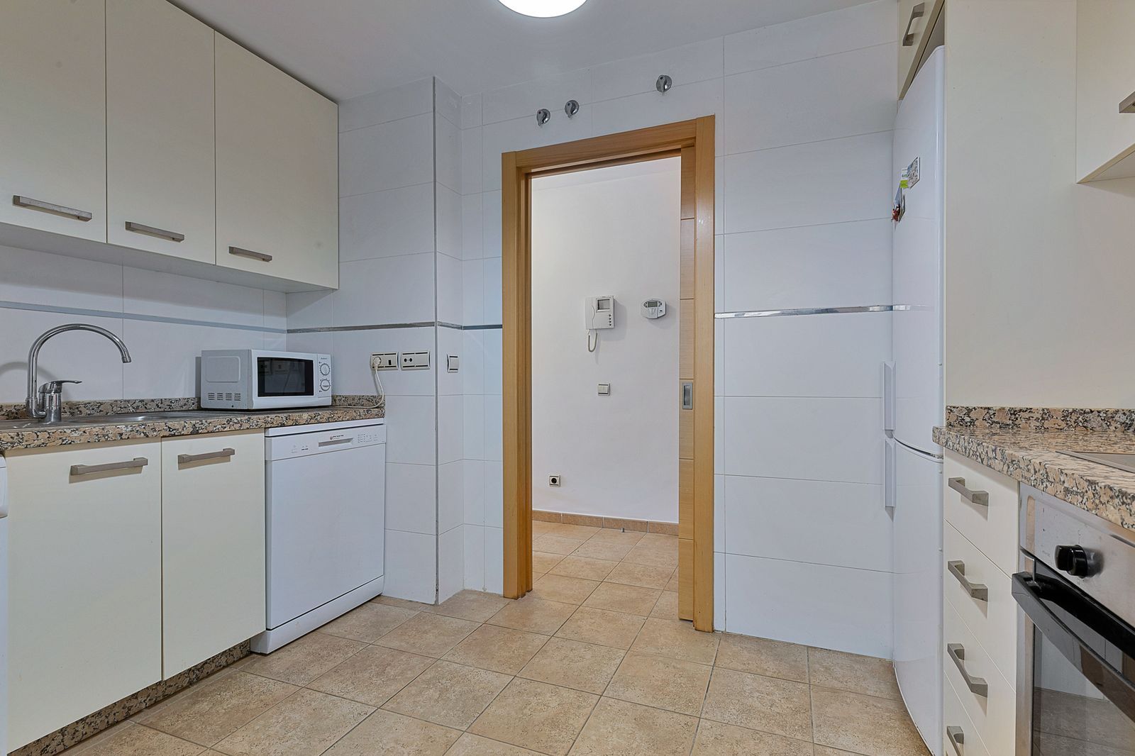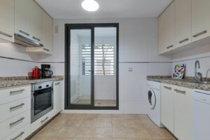 The apartment offers a total living area of approximately 90 m², thoughtfully designed for comfort and functionality. The fully equipped, separate kitchen includes a practical adjoining storage and laundry room. Just beyond the kitchen, you'll find a spacious living room with ample space for both a dining area and a lounge – a perfect spot to relax or entertain. From the living room, you step out onto a fantastic 30 m² terrace, perfectly south-facing, fully private, and with partial sea views. Both bedrooms offer direct access to the terrace, seamlessly blending indoor and outdoor living – ideal for enjoying the sunny lifestyle all year round.
