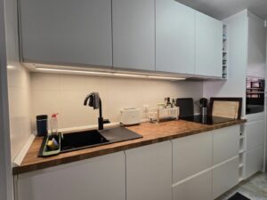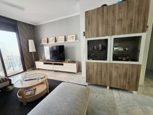 The property has recently undergone several updates, giving its already modern and well-maintained appearance an extra boost. Large windows and sheers provide abundant natural light and a feeling of spaciousness. From the living room and balcony, you can enjoy breathtaking views of the green spaces and the Mediterranean Sea.