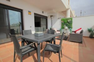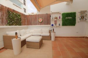 Come and take a look at this superb value property in the La Noria area of La Cala de Mijas. This ground floor modern apartment is ready to use immediately, just bring your swimming gear and a towel. Bright open lounge diner, fully fitted kitchen and two double bedrooms with built-in wardrobes plus hot and cold air conditioning throughout. The main bedroom has a full en-suite bathroom and access to the one of the large partially covered terraces, the guest bedroom has the use of the additional shower room and access to the second large partially covered terrace which also has its own private bar. This property has the huge advantage of having a supermarket on the doorstep and still being only a short walk to the coastal town of La Cala de Mijas, the beach and public transport. Owners also have the use of the beautifully maintained communal swimming pool, an underground parking space, community CCTV, the 2 large terraces mean you can chase the sun or shade plus very reasonable running costs make this is a very desirable choice.
