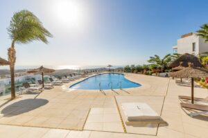 Residents benefit from beautiful communal gardens, three swimming pools, a fully equipped gym with outstanding views, indoor and outdoor jacuzzis, and a sauna, all set within a quiet, family-friendly environment surrounded by nature.