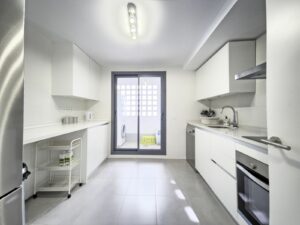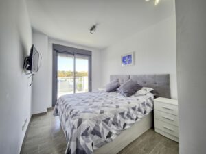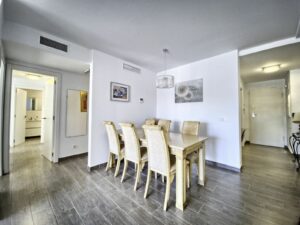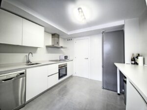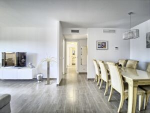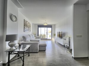 Step inside to discover a spacious and bright living/dining area, designed for both comfort and entertaining. Large sliding doors open out to a generous south-west facing terrace that enjoys sunshine all day long — the ideal space for al fresco dining, relaxing, and soaking up the Mediterranean sun, with extendable awnings providing shade when needed.