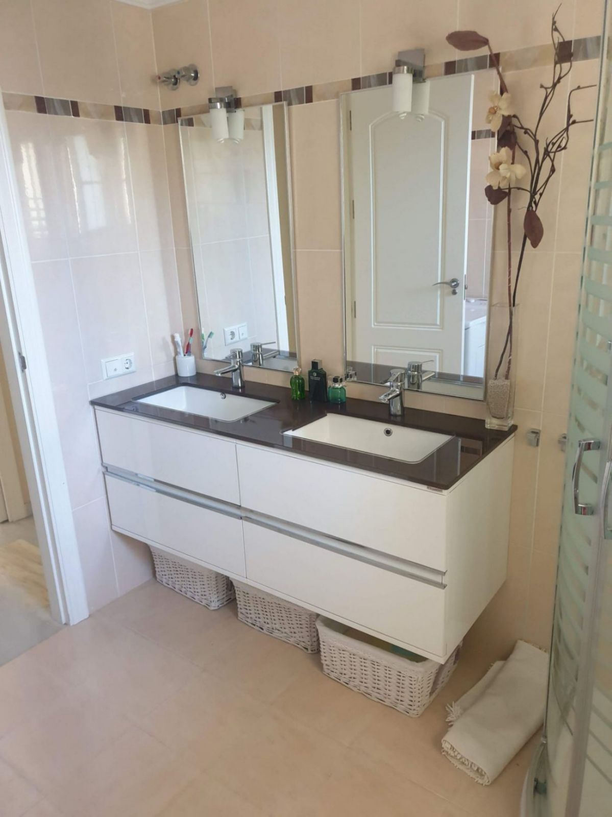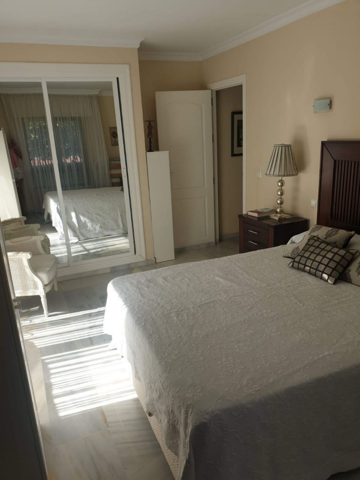 OPPORTUNITY: Beachfront ground-floor apartment measuring 75 m² + 55 m² of private garden, with 2 large bedrooms, 2 bathrooms, a kitchen with a breakfast bar, and a spacious living-dining room with access to the garden. In perfect condition.